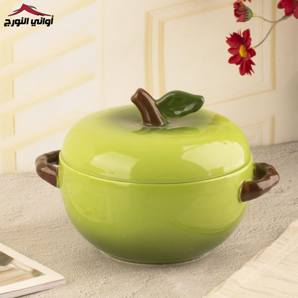 بادية بغطاء شكل تفاح .تباع بالحبة .مصنوع من : السيراميك .المقاس:العمق : 9cmالعرض: 15.5cmالطول: 20.5cm