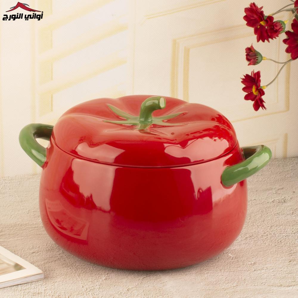 بادية بغطاء شكل طماطم .تباع بالحبة .مصنوع من : السيراميك .متوفرة بمقاسين :صغير:العمق : 10cmالعرض: 17cmالطول : 23cmكبير :العمق: 12cmالعرض : 19cmالطول: 26cm