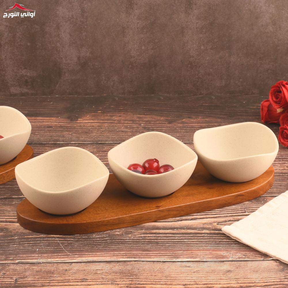 صحون مكسرات بستاند خشب ثلاثي (غادة) .