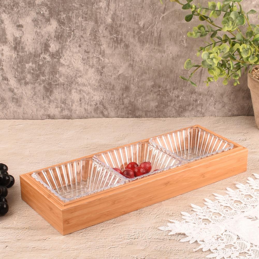 صحون مكسرات ثلاثي بغطاء اكريلك .