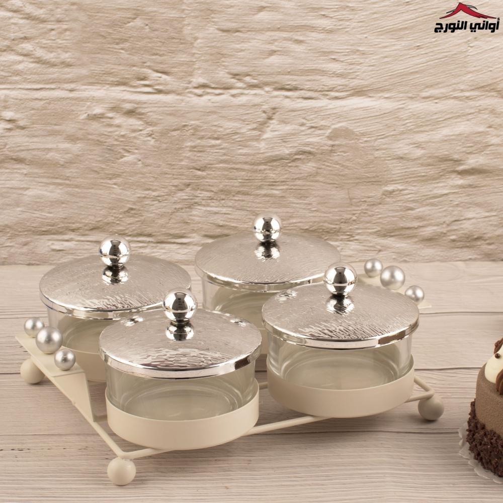 - 4 بوادي زجاج بغطاء - ستاند حديد