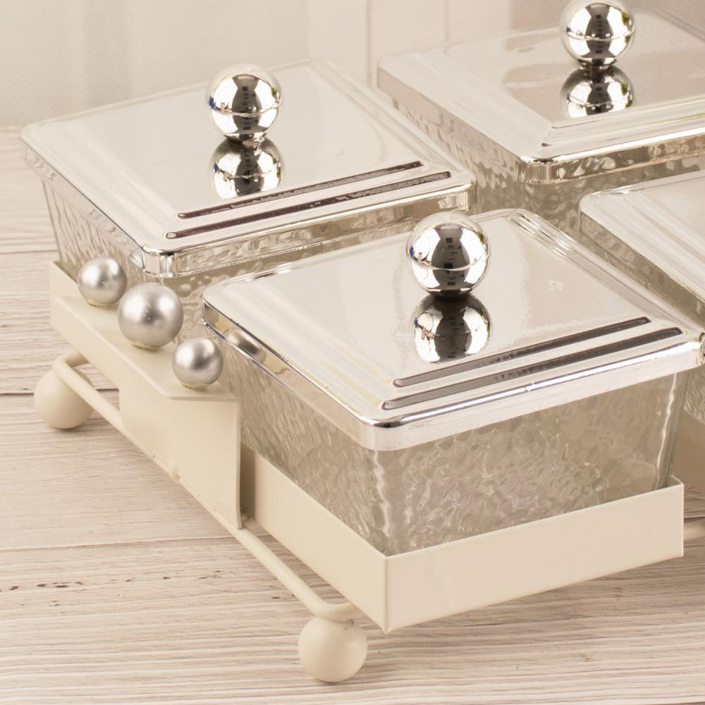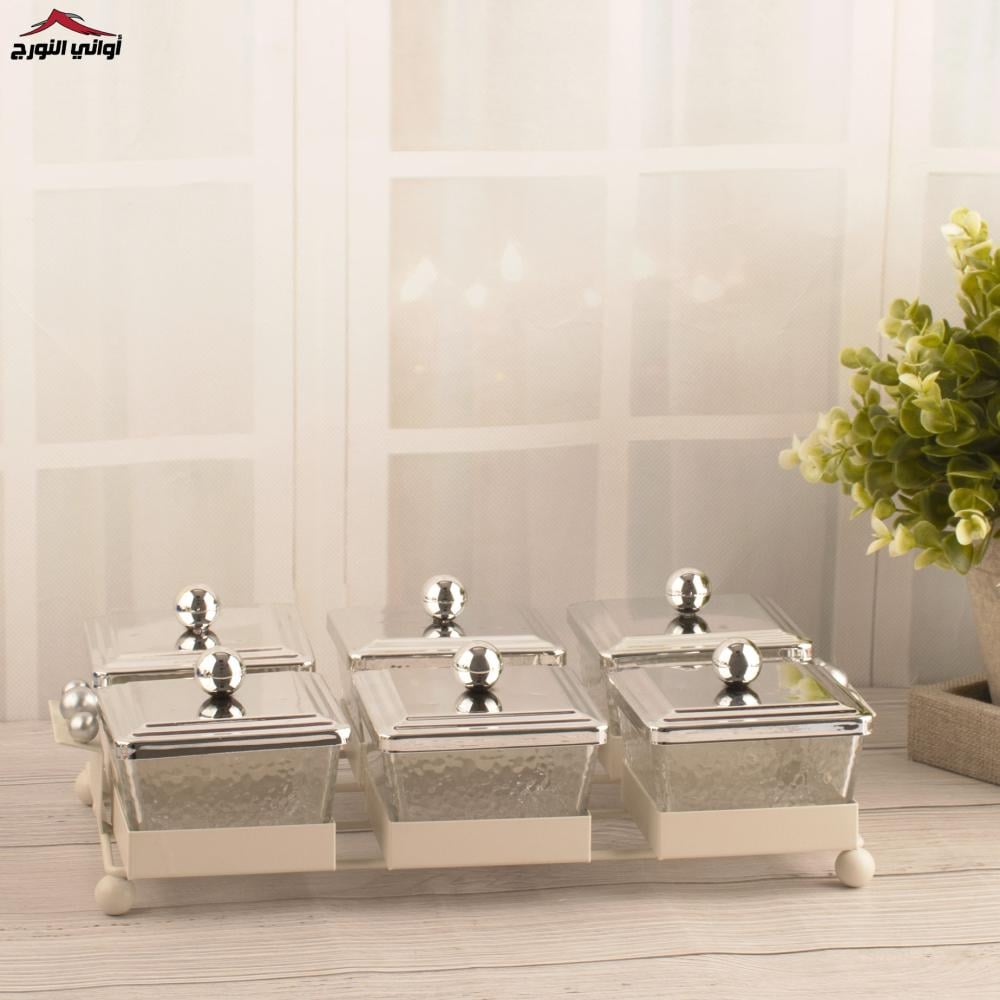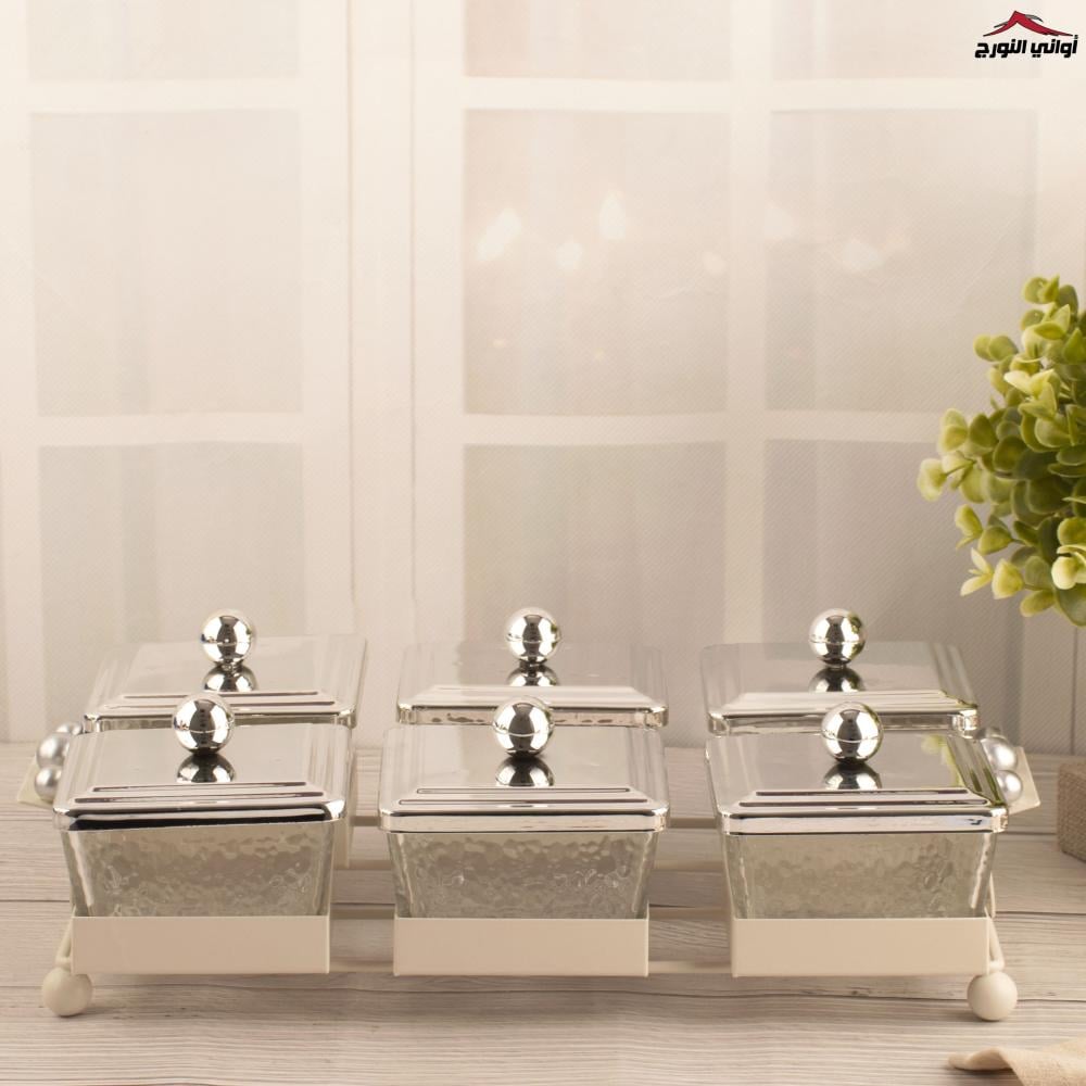 صحون مكسرات سراب فضي سداسي مربع .