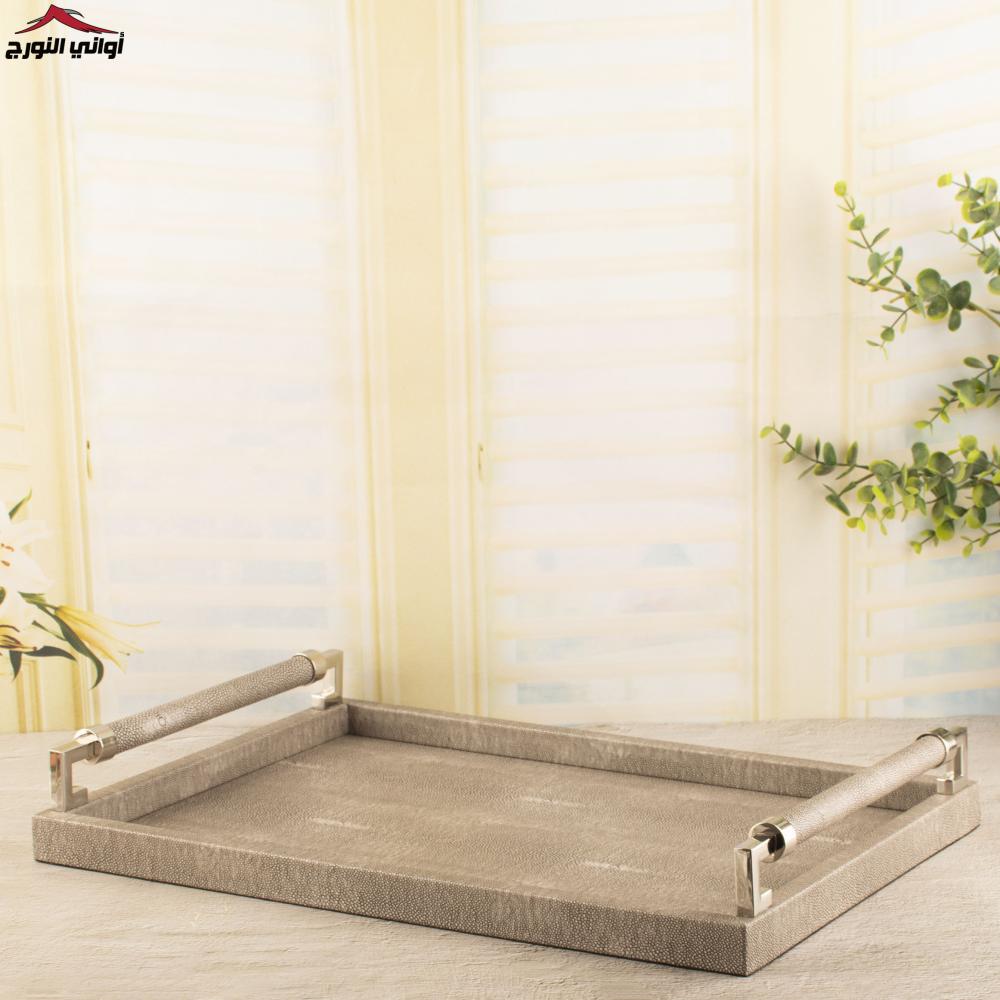 صينية تقديم جلد مايا .يباع بالحبهمصنوع من : الجلد اللون : رمادي الشكل: مستطيلمتعدد الاستخداماتالمقاس :العمق: 3cmالعرض : 32.5cmالطول : 45.5cm