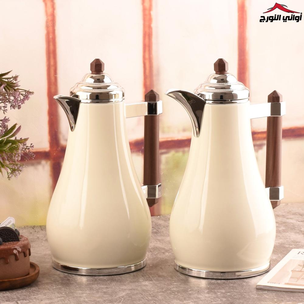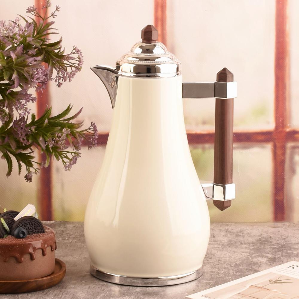 طقم ترامس اللؤلؤ أبيض خشبي .