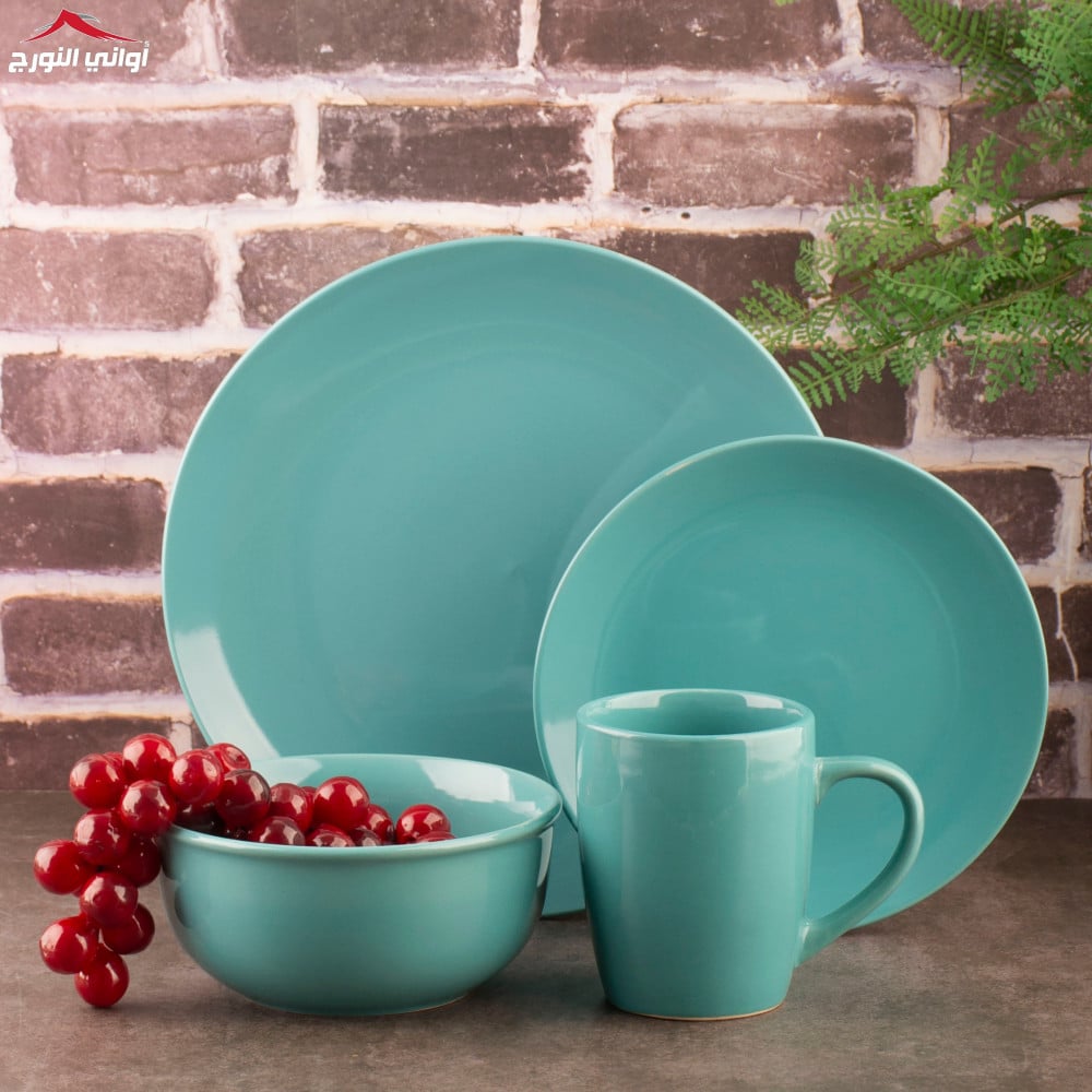 - ( 4 صحون كبيرة , 4 صحون صغيرة , 4 بوادي, 4 أكواب ).