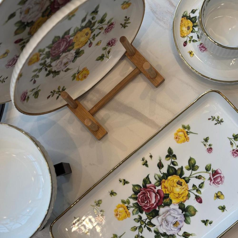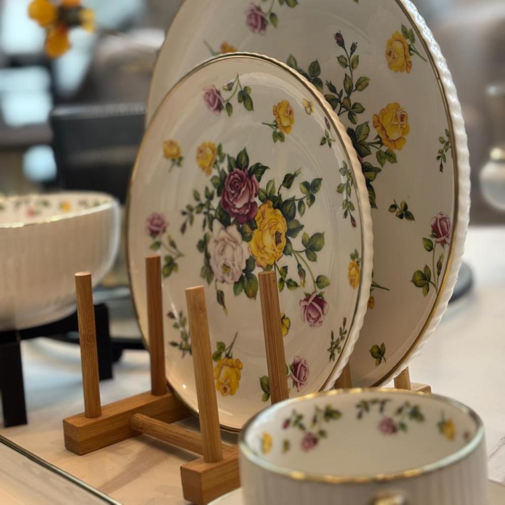 طقم عشاء 32 قطعة .مصنوع من السيراميك .مكون من 32 قطعه :( 6 صحون كبيرة , 6 صحون صغيرة , 6 بوادي , 6 أكواب مع 6 صحون، 2 صحن طويل ).مناسب للتقديم ل 6 أشخاص .مناسب للتقديم كهديه .
