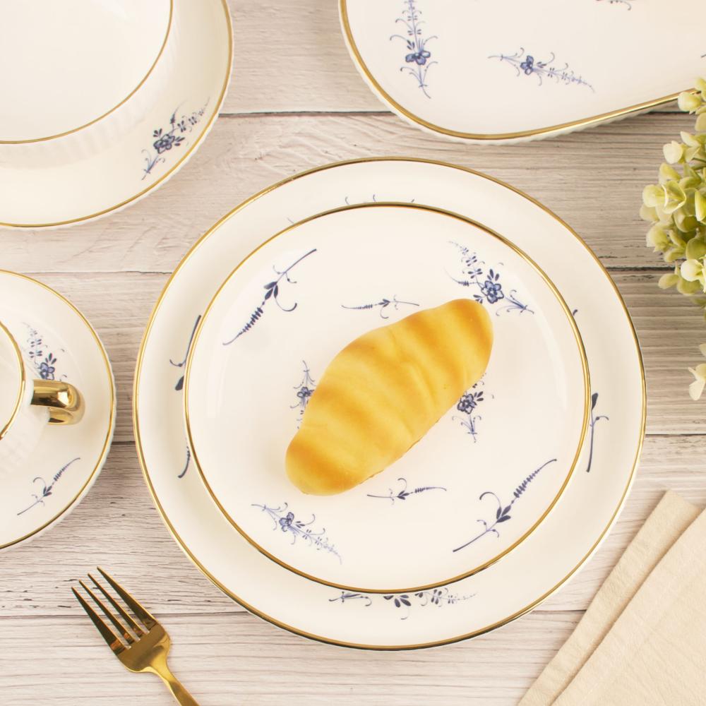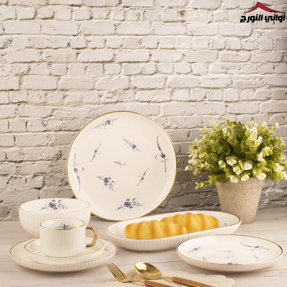 - ( 6 صحون كبيرة , 6 صحون صغيرة , 6 بوادي , 6 أكواب مع 6 صحون، 2 صحن طويل ).