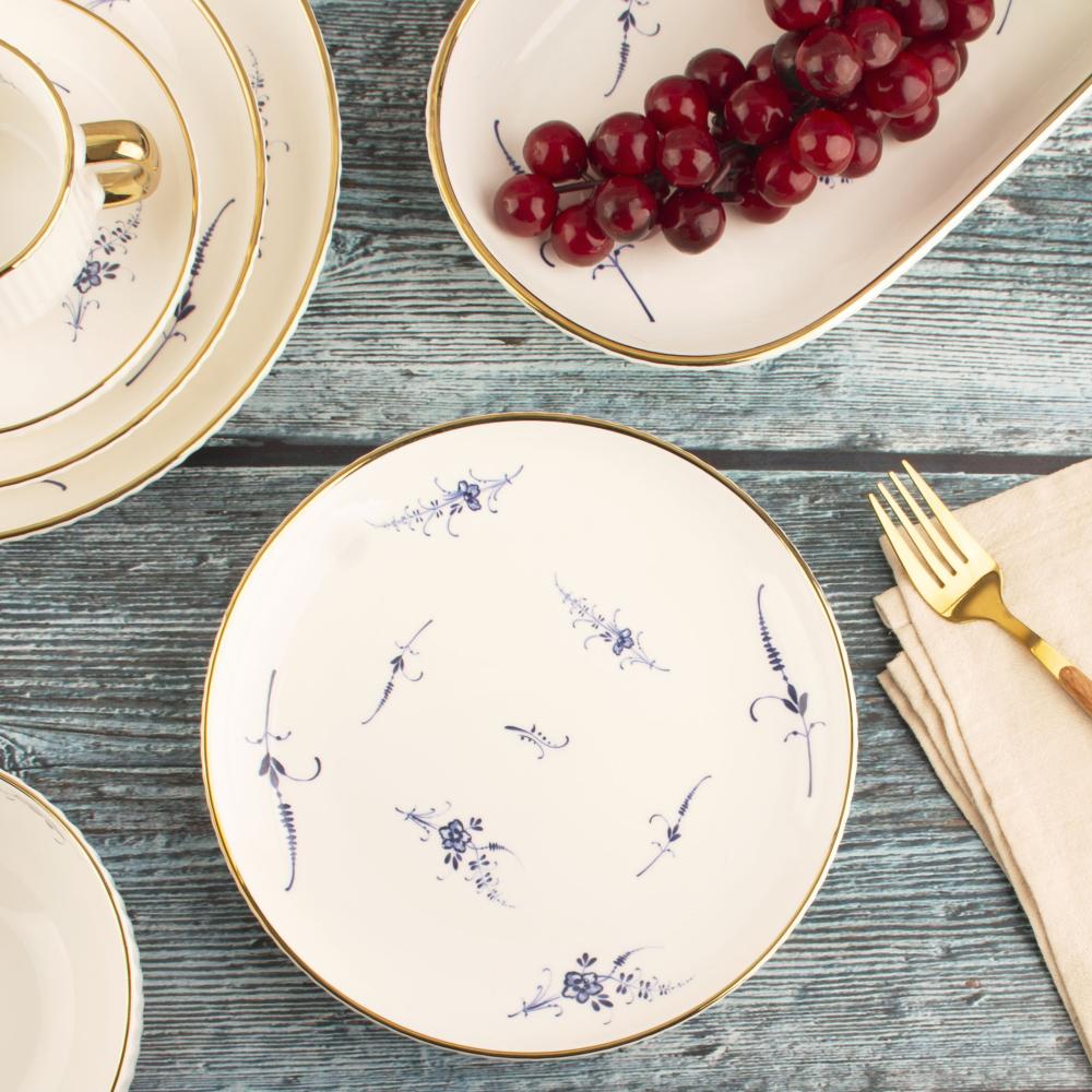 - اللون : أبيض بنقش أزرق وحواف ذهبي .