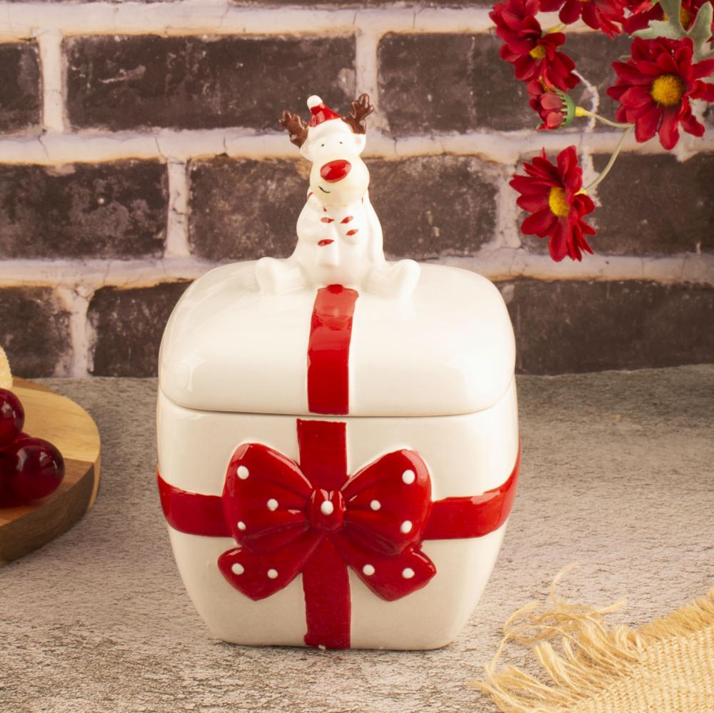 علبة بغطاء شكل حيوان الرنة .تباع بالحبة .مصنوع من : السيراميك .المقاس:الارتفاع الكلي : 19.5cmالعرض: 12cm