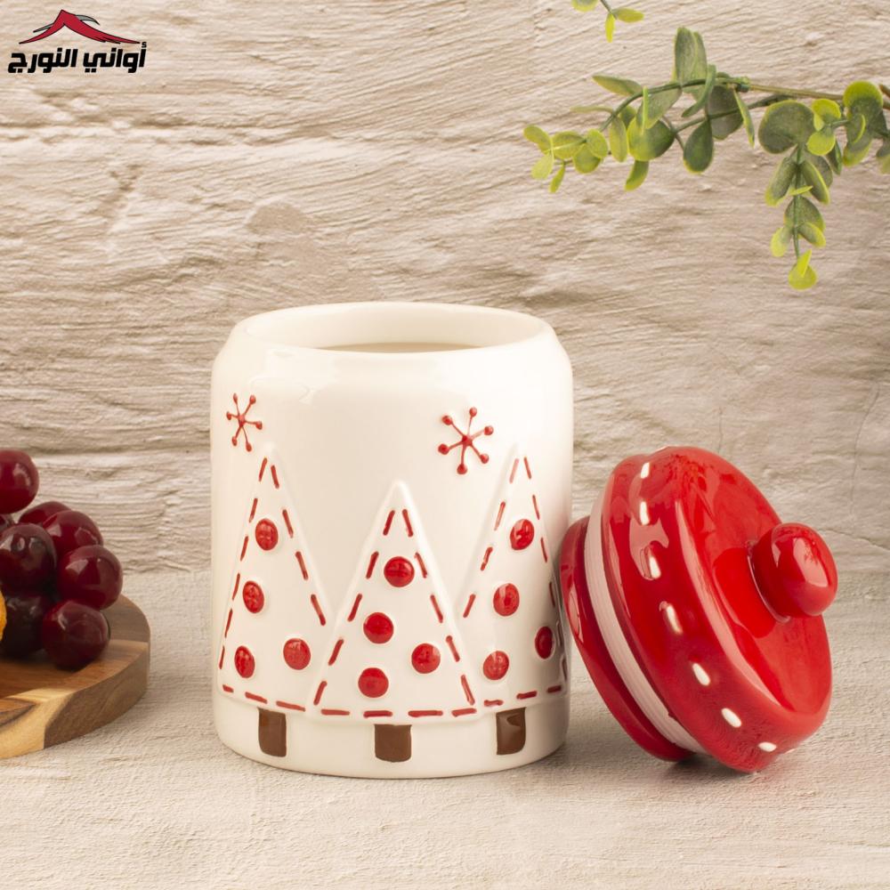 علبة سيراميك شجرة الأرز صغير .تباع بالحبة .مصنوع من : السيراميك .اللون : أبيض و أحمر .المقاس:العرض : 10.5cmالارتفاع: 15cm