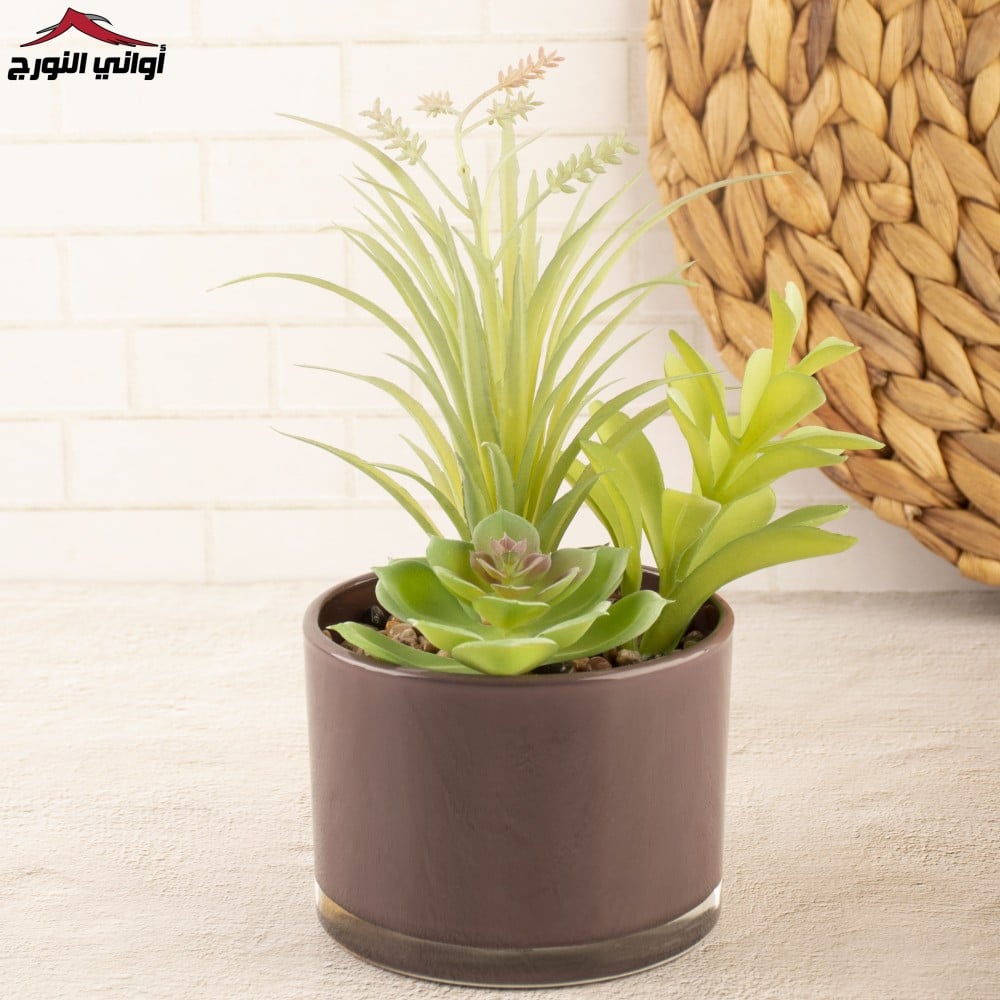 فازة زهور بنفسجي .تباع بالحبه .اللون : بنفسجي / أخضر .حوض زجاجي .المقاس التقريبي:الارتفاع: 21CMالحوض:الطول: 8CMالعرض: 10.5CM